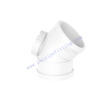 Pvc fitting 45 deg elbow with cleanout connecting two PVC pipes of the same size, the role of inspection port, Clean up blockage in connection between PVC pipe and pvc fitting 45 degree elbow.